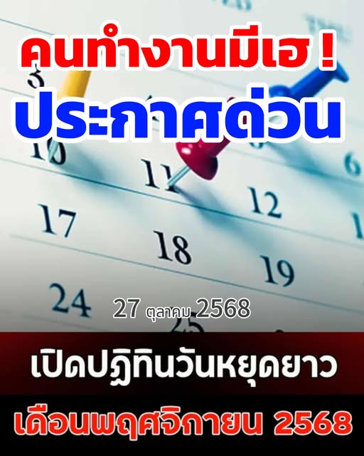 เปิดปฏิทินวันหยุดยาว เดือนพฤศจิกายน 2568